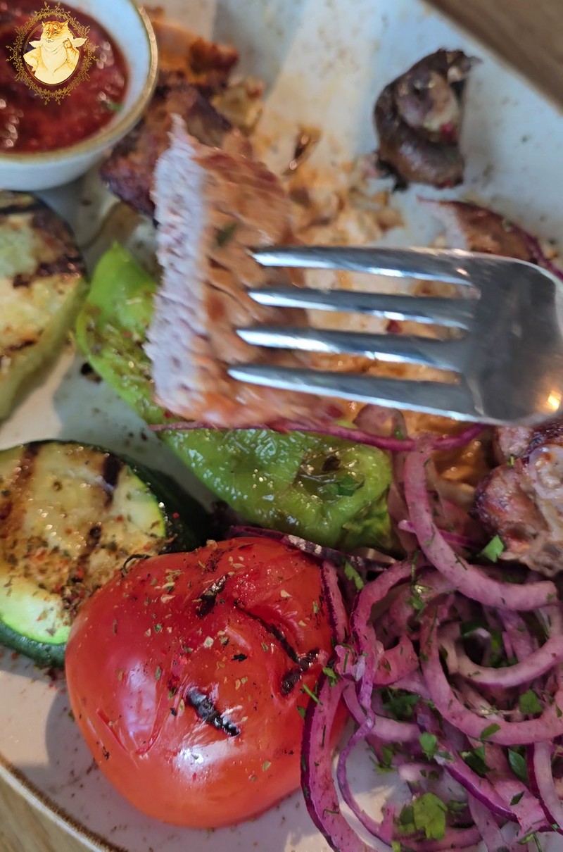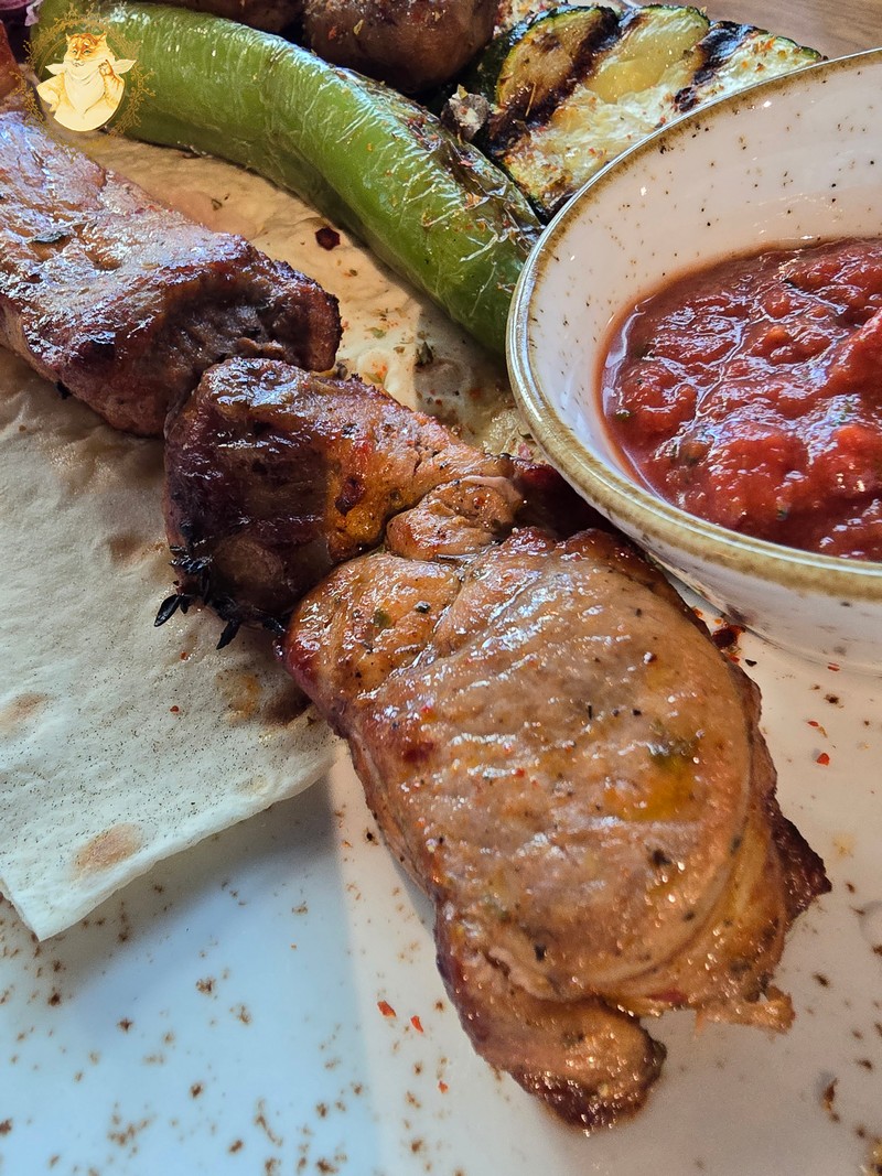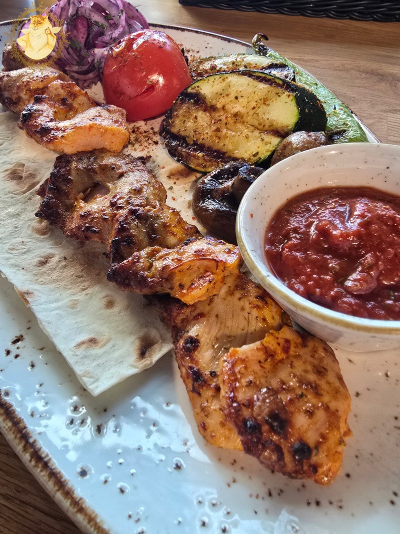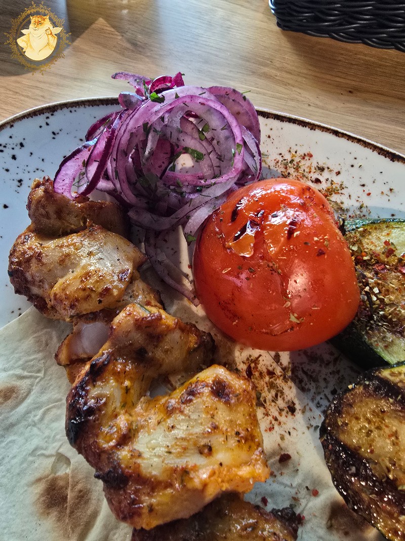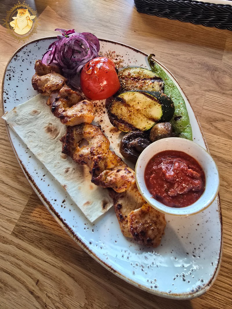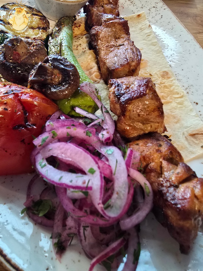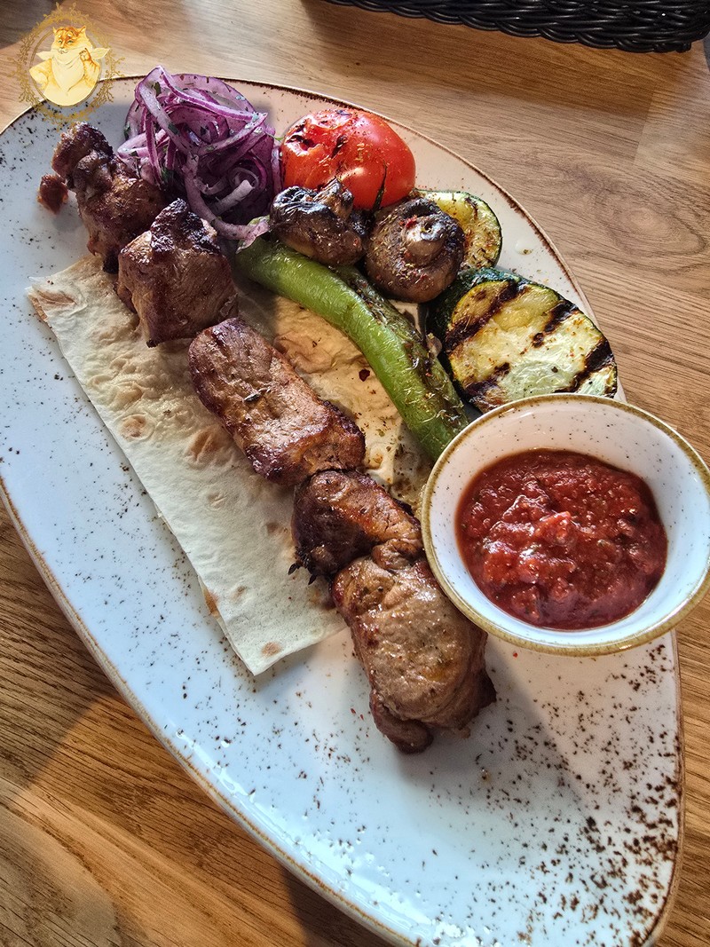 O pamatę atneštas šašlykų porcijas abu su Katiniene džiaugėmės jog tos klaidos nepadarėme, ir pasilikome prie jau siūlomo lavašo.