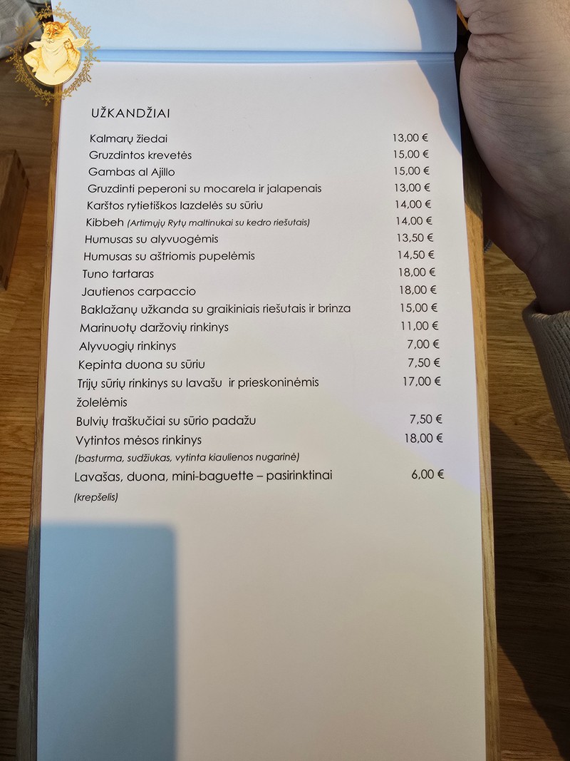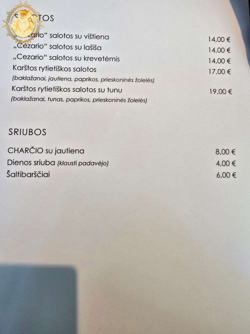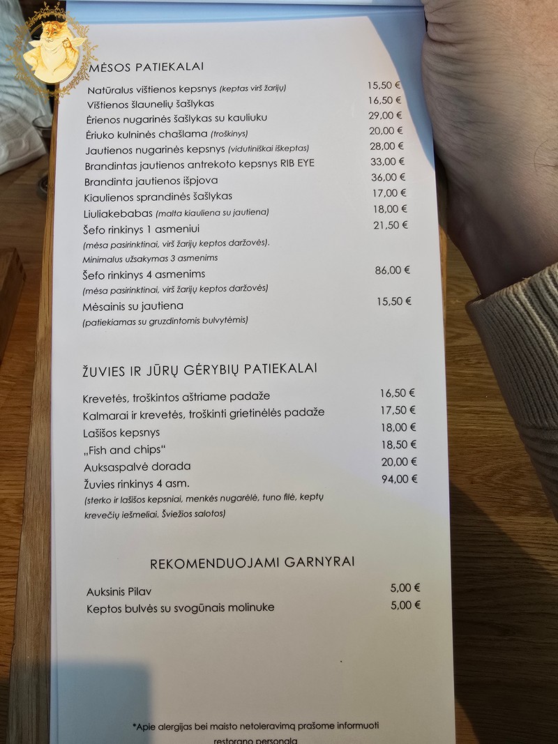 Dienos pietų meniu puikavosi patiekalai, kurių kainos buvo perkopusios per 10 € ribą ir pasakyti, kad jos didelės negaliu, nes restorano salė mums atėjus prieš 14:00 val. buvo pilnutėlė.