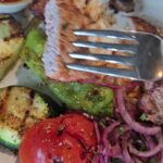 Katinienės valgytas vištienos šlaunelių šašlykas buvo sultingas, minkštutis, ko negaliu pasakyti apie mano valgytą kiaulienos šašlyką.
