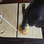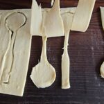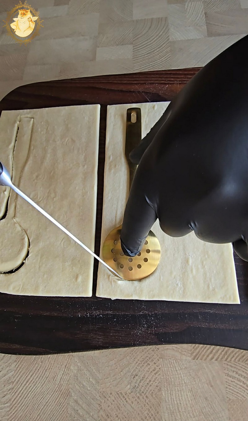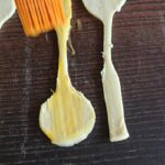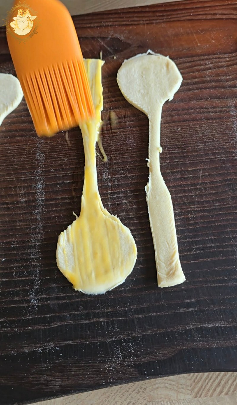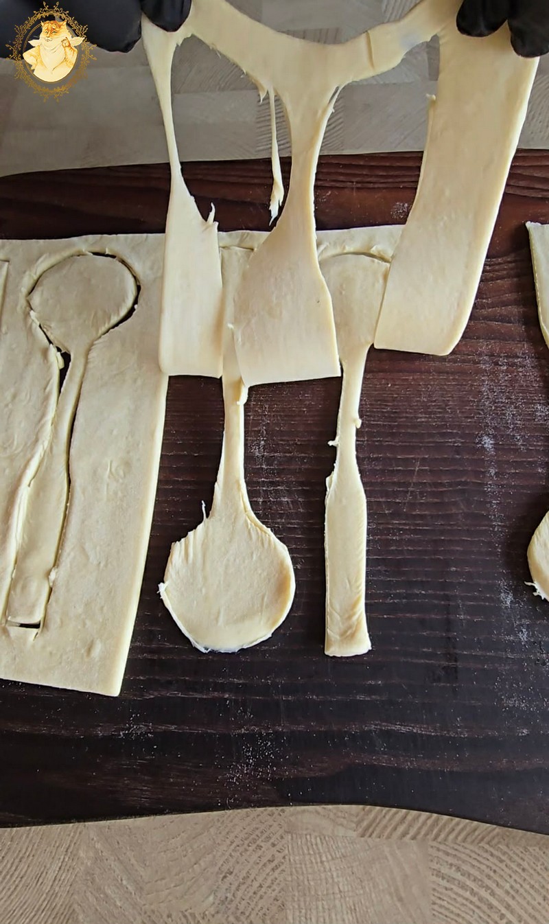 Plokščio šaukštelio pagalba iš tešlos išpjauname šaukštelius.