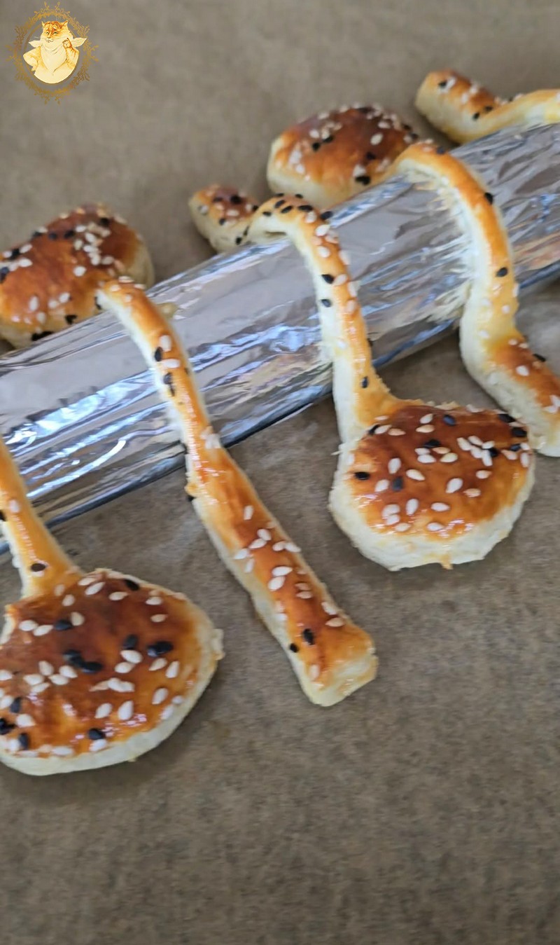 Sudėję ant panašios formos išpjautus tešlos šaukštelius kepsime įkaitintoje orkaitėje iki 180 C apie 15 min.
