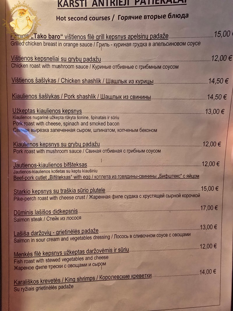 Vartydamas baro meniu supratau, kad tai buvo būtent tai, ko man Riebaus katino gimtadienio progai ir reikėjo, kažko žemiško, su lietuviškas tradicijas nepamiršusia virtuve.