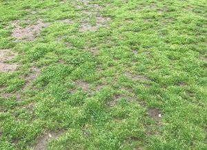 Nuotraukoje pavaizduota parko scena, kurioje matoma žolė.
