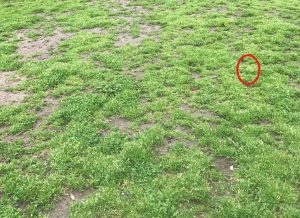 Žolėje matomas teniso kamuoliukas, kurį reikia rasti per 4 sekundes.