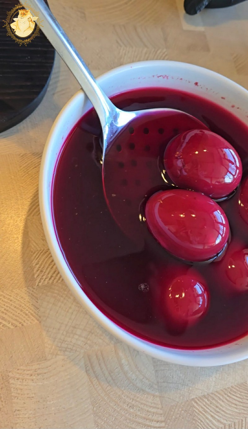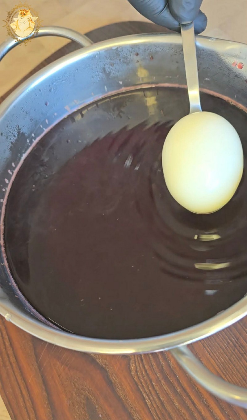Nukošę skystį, įpilame į jį šiek tiek acto (1-2 v.š.) ir panardiname tame skystyje visus kiaušinius.