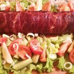 Net neabejoju, kad dauguma tiek vakar, tiek šiandien švenčiate Lietuvos šimtmetį. Tad nesuklysiu sakydamas, kad šventėms turi būti ir šventiniai patiekalai. Nors už lango kaip tyčia pridrėbė sniego, tai mane neišgazdina ir aš laikausi užsibrėžto tikslo. Atsikasu aikštelę kepsninei, ir neužilgo jau rūgsta dūmelis. Kol kepsninė kaista, lekiu į virtuvę ir suku šventinį vyniotinį. Jelapenai pateko į vyniotinį neatsitiktinai, o dėl siaučiančio gripo. Aš iš tų kurie, tiki gamtiniais antigripinais. Tad česnakas kartu su jelapenu, manau pati ta sąjunga kovai su šia liga. Visų ingredientų nevardinsiu, tam sukeliu nuotraukas naudotų produktų. Kadangi tai mano ne pirmas toks „suktinukas“, aš jį susuku greitai.